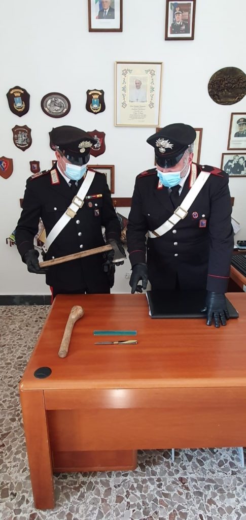 Nella circostanza il suddetto veniva sorpreso a bordo autovettura in località “suio terme” e trovato in possesso di un coltello a serramanico della lunghezza di cm 21,5, un’ascia da boscaiolo ed un bastone in legno artigianale di cm 42. Nei confronti del predetto è stata comminata anche la prevista sanzione amministrativa per violazione delle misure di contenimento atte a fronteggiare l’emergenza covid-19 per essersi trovato in comune diverso da quello di residenza senza comprovato motivo. Il materiale rinvenuto è stato sottoposto a sequestro.
