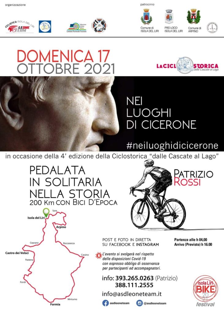 Con la bicicletta che viene utilizzata per collegare i luoghi in cui Cicerone è nato e vissuto, fino a trovare la morte. Principalmente Arpino e Formia ma, ovviamente, anche tutti gli altri luoghi di grande significato storico che si trovano lungo il percorso con i resti romani di Cassino, Scauri, Castro dei Volsci, Ceprano e tanto altro insieme a luoghi di grande importanza ambientale e naturalistica.