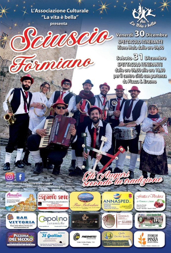 FORMIA – L’associazione culturale-musicale “La Vita è bella” di Formia anche quest’anno sta scaldando i motori per quello che per molti è l’evento dell’anno: “Il Sciuscio Formiano”. Infatti Venerdi 30 Dicembre e Sabato 31 Dicembre 2022 tornerà nella città di Formia la tradizionale e caratteristica serenata di fine anno, che ormai da anni è un appuntamento molto atteso. Il percorso itinerante toccherà tutti i punti della città, per poi concentrarsi in queste due giornate sul centro cittadino.