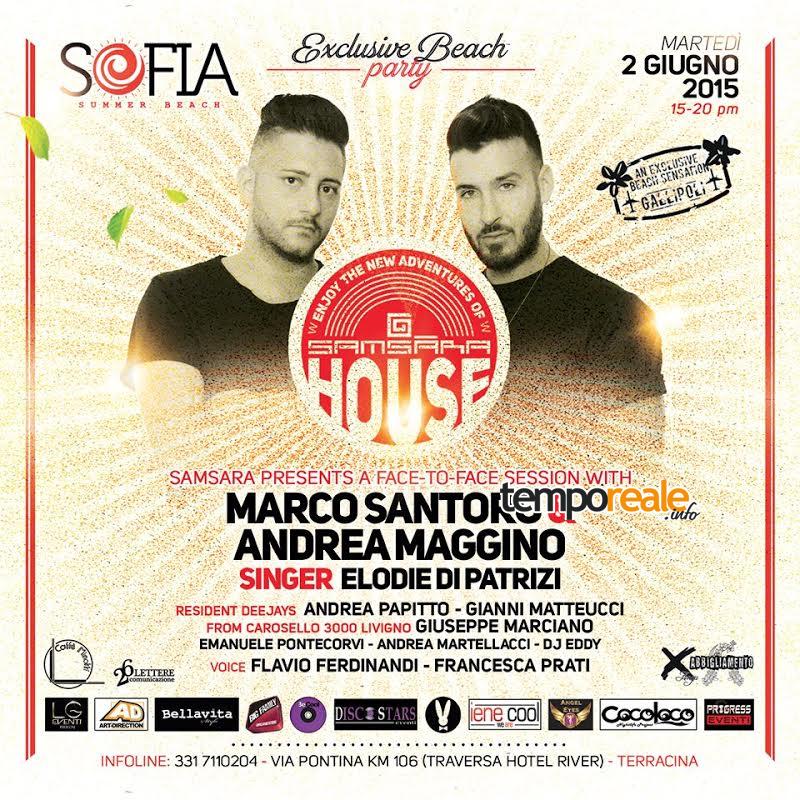 TERRACINA – Si tinge di novità il panorama del divertimento diurno e notturno di Terracina. La “banda” del Sofia Club di Fondi trasloca sul litorale per dare vita ad un locale molto originale. Sulla location appartenente al lido Punto Brasil, da anni promotore di una tipologia di spiaggia dedicata interamente al Sudamerica, dove predomina la cucina tipica, con l’arrivo del Sofia il lido acquisisce nuova linfa e apre gli orizzonti su nuove culture del divertimento. Martedì 2 giugno, il Sofia Summer Beach darà vita ad un’anteprima dei Beach Party in attesa della grande apertura notturna del 13 giugno. La festa direttamente sulla spiaggia, vedrà la collaborazione tra il team del Sofia, ovvero Antonio Riccardi, Iene Cool, Lg Eventi, Crazy Rabbit e Discostars, con uno dei beach party più famoso d’Italia, il Samsara. Infatti, proprio per festeggiare questa nuova location i dj della spiaggia pugliese, saranno ospiti in consolle sulla spiaggia Terracinese. I dj Marco Santoro e Andrea Maggino, con la voce di Elodie Di Patrizi porteranno tra il pubblico quella energia ed emozione propria del loro dancefloor. La consolle vedrà inoltre la partecipazione del dj resident del Sofia Andrea Papitto, di Gianni Matteucci e di Emanuele Pontecorvi. Alla voce un duetto tutto energia e fiato, ovvero Francesca Prati e Flavio Ferdinandi. Apertura suoni a cura dei dj Andrea Martellacci ed Eddy, con la speciale session di Giuseppe Marciano direttamente da Carosello 3000 a Livigno. Quindi dalle 15 fino a sera si ballerà sulla sabbia sottile del Sofia Summer Beach, una nuova locationc he già sta facendo parlare molto di se. Le pubbliche relazioni vedono la partecipazione di: Cocoloco, Big Family, Art Direction, Prigress Eventi, con la speciale collaborazione di Caffè Minotti, Frosinone.