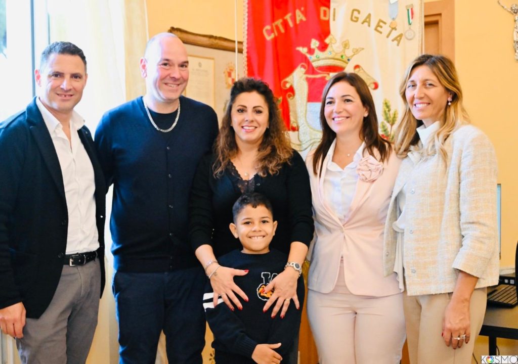 GAETA – Questa mattina il Sindaco di Gaeta Cristian Leccese ha ricevuto nel suo ufficio il piccolo Daniel arrivato dalla Colombia con mamma, papà e l’avv. Alessia Maria Di Biase, referente del centro adozioni internazionali del Comune di Gaeta che ha seguito la coppia nella procedura adottiva in collaborazione con l’ente La Maloca. Daniel accolto unitamente all’assessore all’istruzione Gianna Conte, ha subito scartato i regali che sono stati preparati per lui e ha poi raccontato dell’arrivo in Italia, del cibo che ama mangiare, della scuola che tra poco inizierà a frequentare.