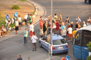 A questo punto il programma dei manifestanti è cambiato, il corteo si è snodato, attraverso la sottostante via Divisione Julia, in direzione del palazzo comunale. L’obiettivo richiesto era avere un crono-programma “certo”, magari da renderlo noto su un manifesto murale, sull’interruzione del flusso idrico in tutti i quartieri di Formia dopo l’ultima comunicazione dell’ente gestore circa l’ulteriore abbassamento delle falde acquifere della sorgente spignese di Capodacqua. Ma il Comune era chiuso e la politica, a differenza di martedì sera, era assente ad un corteo che si è diretto, attraverso via Vitruvio e via Colombo, di nuovo sulla strada regionale Litoranea, bloccata all’altezza della rotonda di Molo Vespucci. Si sono registrati ancora momenti di tensione nel corso di una manifestazione che avrebbe richiesto una partecipazione maggiore se qualche cittadino non avesse deciso di rimanere incuriosito spettatore dietro qualche finestra. La manifestazione, che potrebbe essere ripetuta sabato o domenica pomeriggio in occasione del rientro del traffico balneare dalle vicine Gaeta e Sperlonga, si è conclusa con l’accensione di un fumogeno in via Vitruvio, paralizzata insieme alle altre arterie del centro urbano mentre code chilometriche si creavano inevitabilmente dal versante di Gaeta e Itri e di Scauri a conclusione di un’altra giornata di passione. La politica – come detto – non sembra più occuparsi di questa questione “sensibile” della carenza idrica. L’unica eccezione è rappresentata dal meetup cittadino del Movimento Cinque stelle che di nuovo fa salire sul banco degli imputati il sindaco di Formia Sandro Bartolomeo: “Istintivamente ci verrebbe voglia di chiedere per l’ennesima volta le dimissioni di un sindaco che di fronte ad un simile disastro ninsiste a formulare promesse e rassicurazioni, ma che crediamo sia conscio non potrà mai mantenere. Sarebbe troppo comodo però, a questo punto, lasciare e sottrarsi alle responsabilità. Questo sindaco con tutta la Giunta ed il Consiglio Comunale devono rimanere in carica per rispondere politicamente della loro incapacità. Tuttavia, la situazione sta sfuggendo ormai di mano ai sindaci ed è tutta nelle mani di un gestore che a quanto pare dopo aver dimostrato incompetenza ed incapacità gestionale, con la connivenza della Regione che dichiarando lo stato di calamità lo esclude di fatto da qualsiasi responsabilità, continua con arroganza e sfuggendo totalmente al controllo pubblico, a fare il bello ed il cattivo tempo, inseguendo il business legato al servizio idrico, chiedendo ed ottenendo nuovi fondi per ricerche e interventi strutturali che avrebbe già dovuto eseguire da anni!”. Il movimento grillino ha considerato “indispensabile” l’intervento del Prefetto di Latina Pierluigi Faloni come già richiesto nelle fasi iniziali di questa crisi e, per l’immediato, ha avanzato un “pacchetto” di proposte”. Spicca innanzitutto la costituzione di un’unità di crisi, per il coordinamento delle iniziative sull’intero territorio del Sud Pontino. E poi l’immediata disponibilità di un numero di autobotti sufficiente per l’approvvigionamento anche fuori provincia e regione di un quantitativo di acqua sufficiente per ripristinare un minimo di normalità nell’erogazione del flusso idrico, con costi a carico del gestore inadempiente; l’adozione di un Numero Verde per l’erogazione dei servizi sostitutivi e la possibilità di intervento gratuito a domicilio per i cittadini disagiati e, perché no, il coinvolgimento della Protezione civile regionale e, qualora occorra, dei mezzi dell’Esercito”.