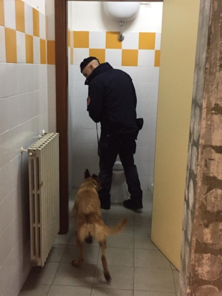 GAETA – In data odierna, nel Comune di Gaeta, nel corso di predisposti servizi finalizzati a contrastare lo spaccio di sostanze stupefacenti e contestuale consumo tra adolescenti, i Carabinieri della locale Tenenza, con l’ausilio del Nucleo Carabinieri Cinofili, presso alcuni istituti di istruzione secondaria, effettuavano una serie di controlli, ispezioni e perquisizioni, rinvenendo all’interno dei servizi igienici maschili degli istituti scolasti circa 2 grammi di sostanza stupefacente del tipo “hashish”, un cosiddetto “trita-erba” nonché materiale atto al confezionamento.